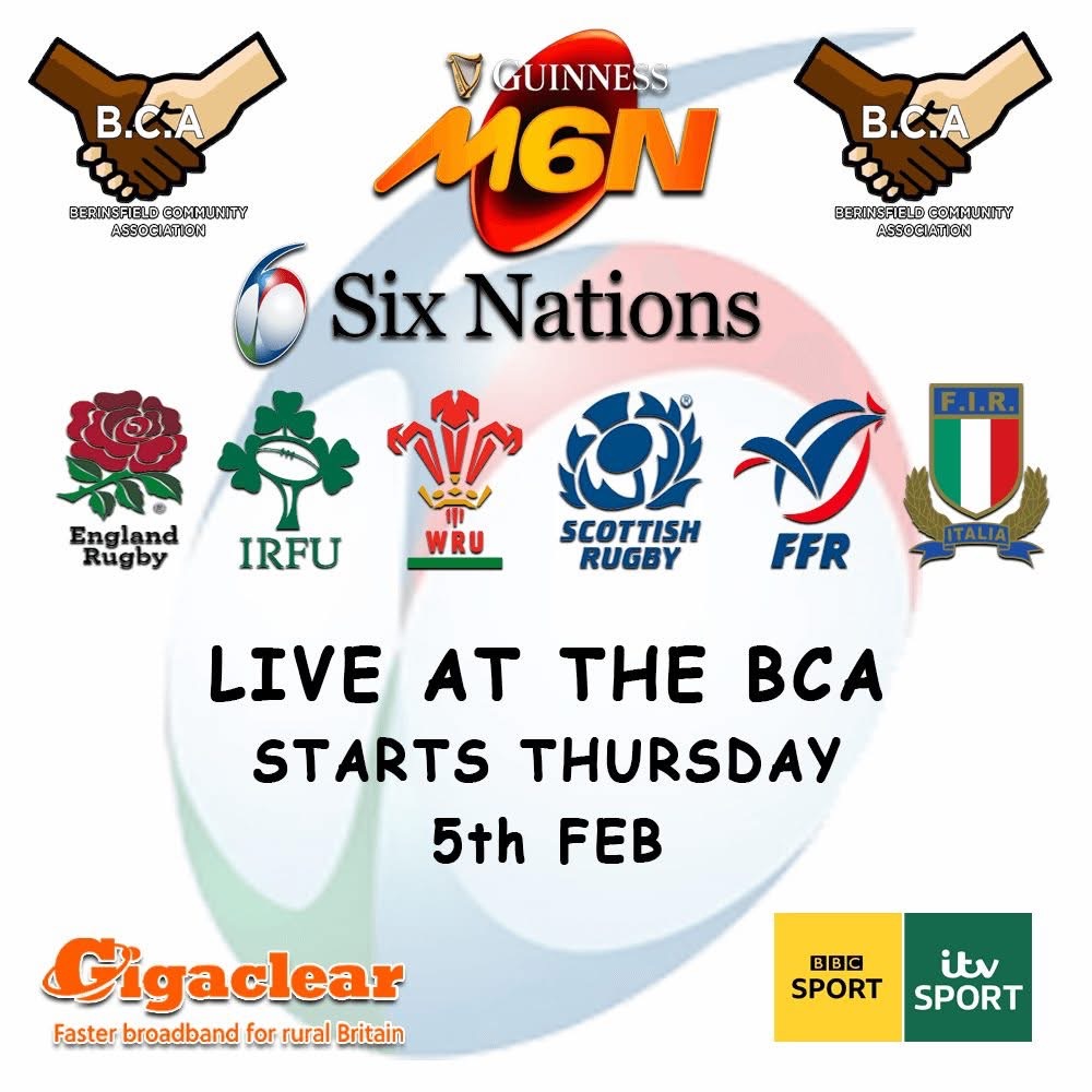SIX NATIONS RUGBY – All games shown live here. Come join us and cheer on your team. Starts 5th February